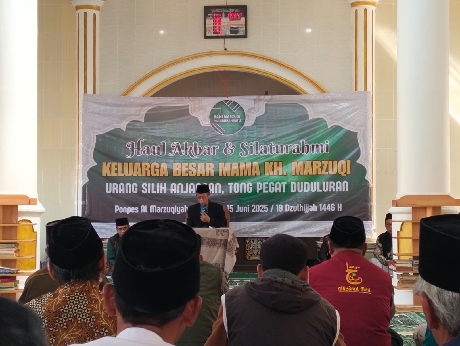 Infokowasi.com – Ratusan santri, jamaah, alumni, serta masyarakat dari berbagai daerah memadati Kompleks Pondok Pesantren Al-Marzuqiyah Kampung Cikurutug Desa Cibodas Kecamatan Palabuhanratu Kabupaten Sukabumi untuk menghadiri peringatan Haul Akbar yang digelar pada hari Minggu, 15 Juni 2025 mulai Pukul 08.00 WIB sampai selesai.