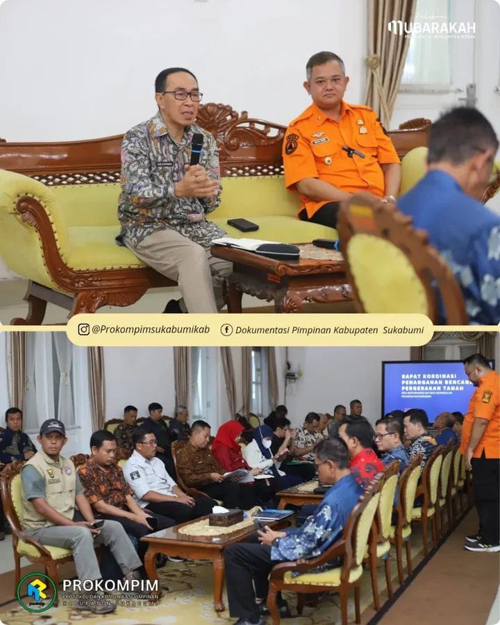 Infokowasi.com – Sekretaris Daerah Kabupaten Sukabumi H. Ade Suryaman, SH., MM, pimpin rapat koordinasi penanganan bencana pergerakan tanah di Kecamatan Bantargadung, Kamis (05/03/2026). Bertempat di Aula utama Pendopo Sukabumi.
