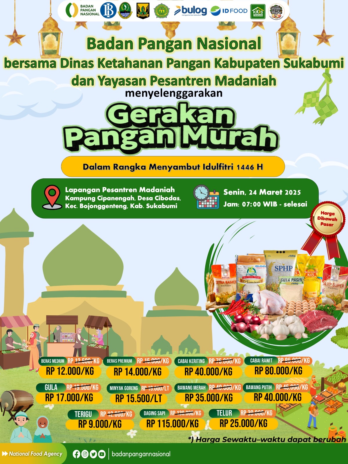 Infokowasi.com – Ayo Hadiri Bazar Murah Badan Pangan Nasional Kerjasama Dengan Dinas Ketahanan Pangan Kabupaten Sukabumi Dan Yayasan Pesantren Madaniah (Bidang KBM MI, SMP Dan SMK Madaniah)