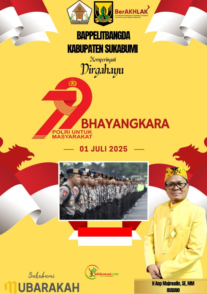 BAPPELITBANGDA Kabupaten Sukabumi Mengucapkan Selamat Hari Bhayangkara yang ke 79, 1 Juli 2025 “Polri Untuk Masyarakat”.