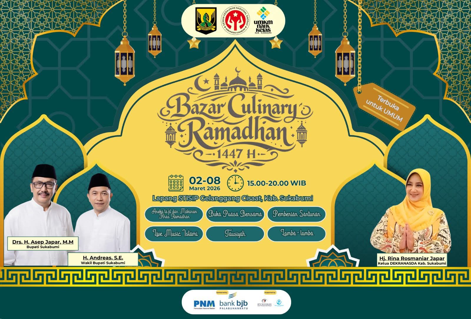 Terbuka untuk umum. Mari hadir bersama keluarga dan sahabat, dukung UMKM lokal, serta pererat silaturahmi di bulan penuh rahmat ini.