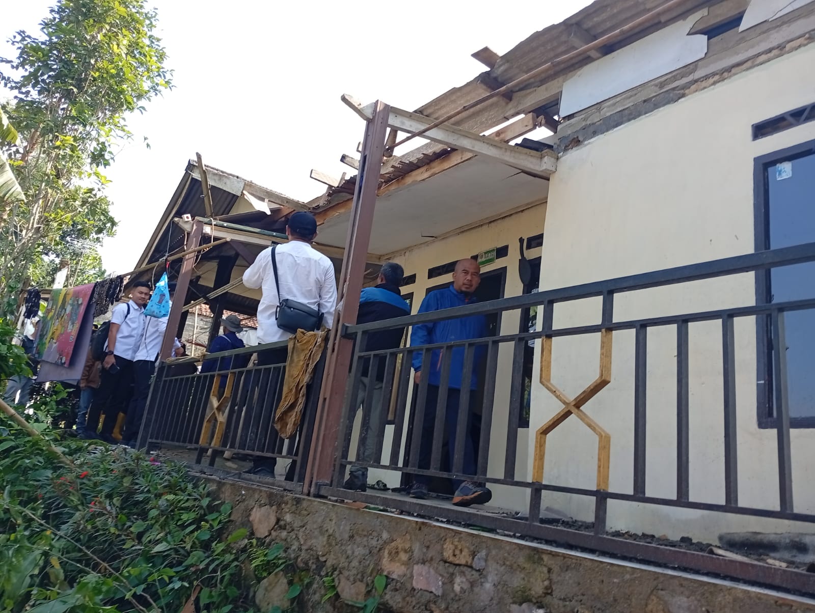 Kondisi saat ini atap rumah yang mengalami kerusakan untuk sementara ditutupi menggunkan plastik alakdarnya.