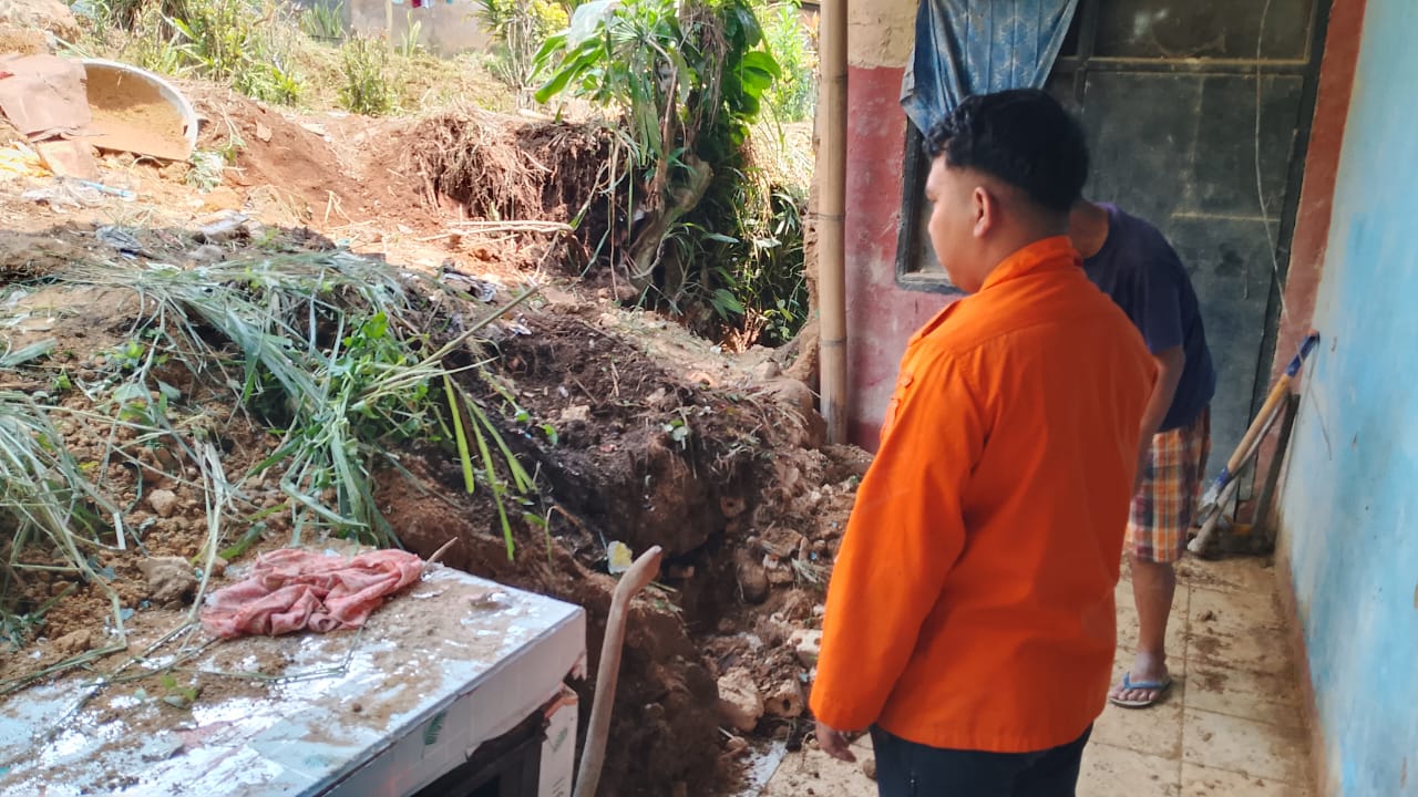 Hujan intensitas tinggi yang berlangsung cukup lama mengakibatkan TPT belakang rumah Asep Maulana, (menorobos masuk mengakibatkan rusak ruang dapur dan kamar mandi).