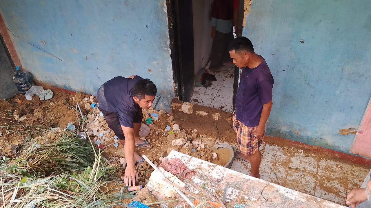 Hujan intensitas tinggi yang berlangsung cukup lama mengakibatkan TPT belakang rumah Asep Maulana, (menorobos masuk mengakibatkan rusak ruang dapur dan kamar mandi).