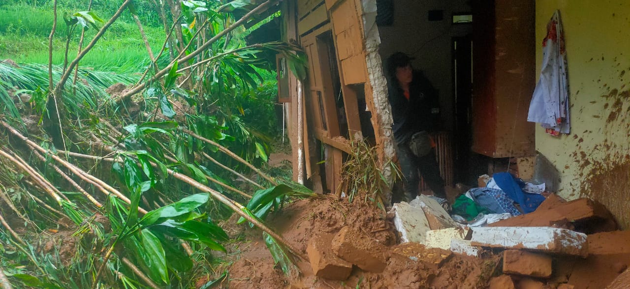 Hari Sabtu, 22 November 2025 Pukul 16.00 WIB. Kampung Lembah Duhur RT. 06/01 Desa Girijaya Kecamatan Cidahu Kabupaten Sukabumi Hujan Derass yang begitu lama menyebabkan tanah Longsor Menerobos Masuk kerumah Bpk. H Ujang (Rusak Berat).