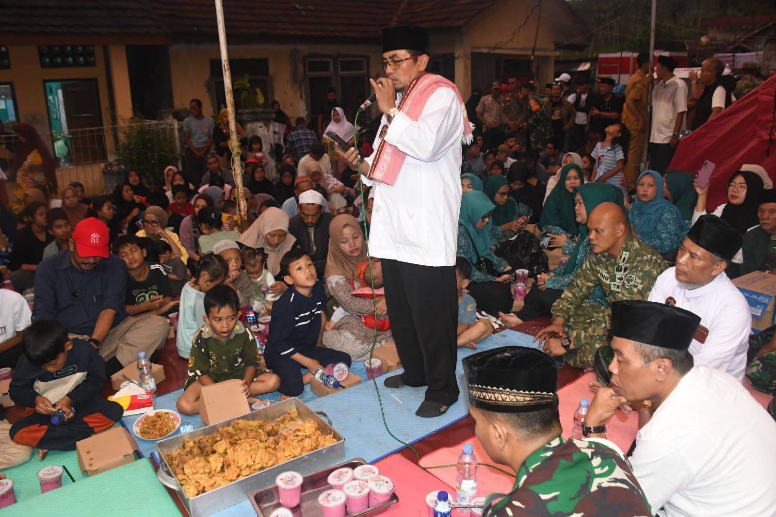 Kegiatan buka puasa bersama yang digelar di posko pengungsian, halaman SDN 1 Bantargadung, menjadi wujud kepedulian dan empati pemerintah daerah kepada masyarakat yang tengah menghadapi masa sulit akibat bencana pergerakan tanah.