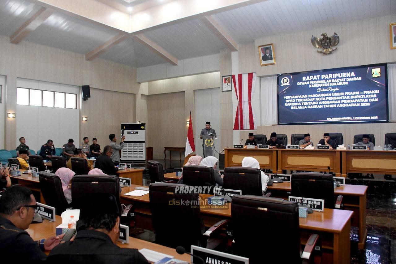 Rapat Paripurna digelar di Ruang Sidang DPRD Kabupaten Sukabumi, Rabu (1/10/2025), dan dipimpin langsung oleh Ketua DPRD Kabupaten Sukabumi, Budi Azhar Mutawali.