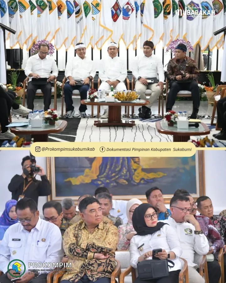 Infokowasi.com- Bupati Sukabumi H. Asep Japar Didampingi Sekda Kab. Sukabumi H. Ade Suryaman, SH.,MM. menghadiri Rapat Evaluasi Anggaran Pendapatan dan Belanja Daerah (APBD) Kabupaten/Kota se-Jawa Barat yang diselenggarakan di Ruang Resepsi Bale Pakuan, Gedung Negara Pakuan, Jalan Otto Iskandar Dinata Nomor 1, Kota Bandung, Jumat (09/01/2026).