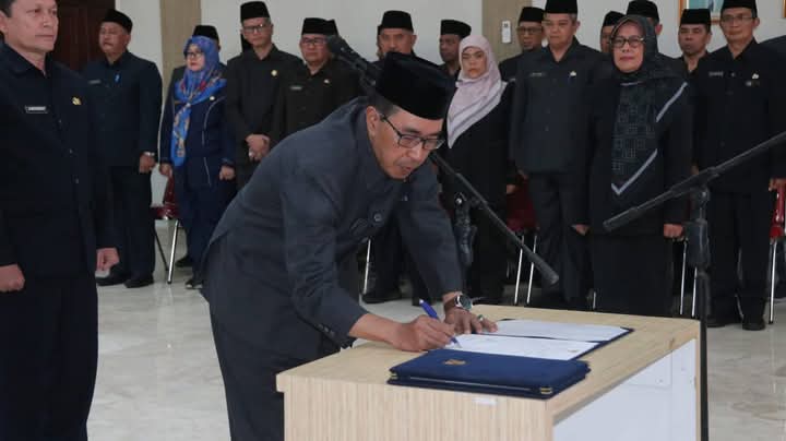 Pelantikan ini berdasarkan lampiran keputusan Bupati Sukabumi nomor 800.1.3.1/76/BKPSDM/2025 tentang pengangkatan dan alih tugas jabatan administrator dan jabatan pengawas dilingkungan Pemerintah Kabupaten Sukabumi.