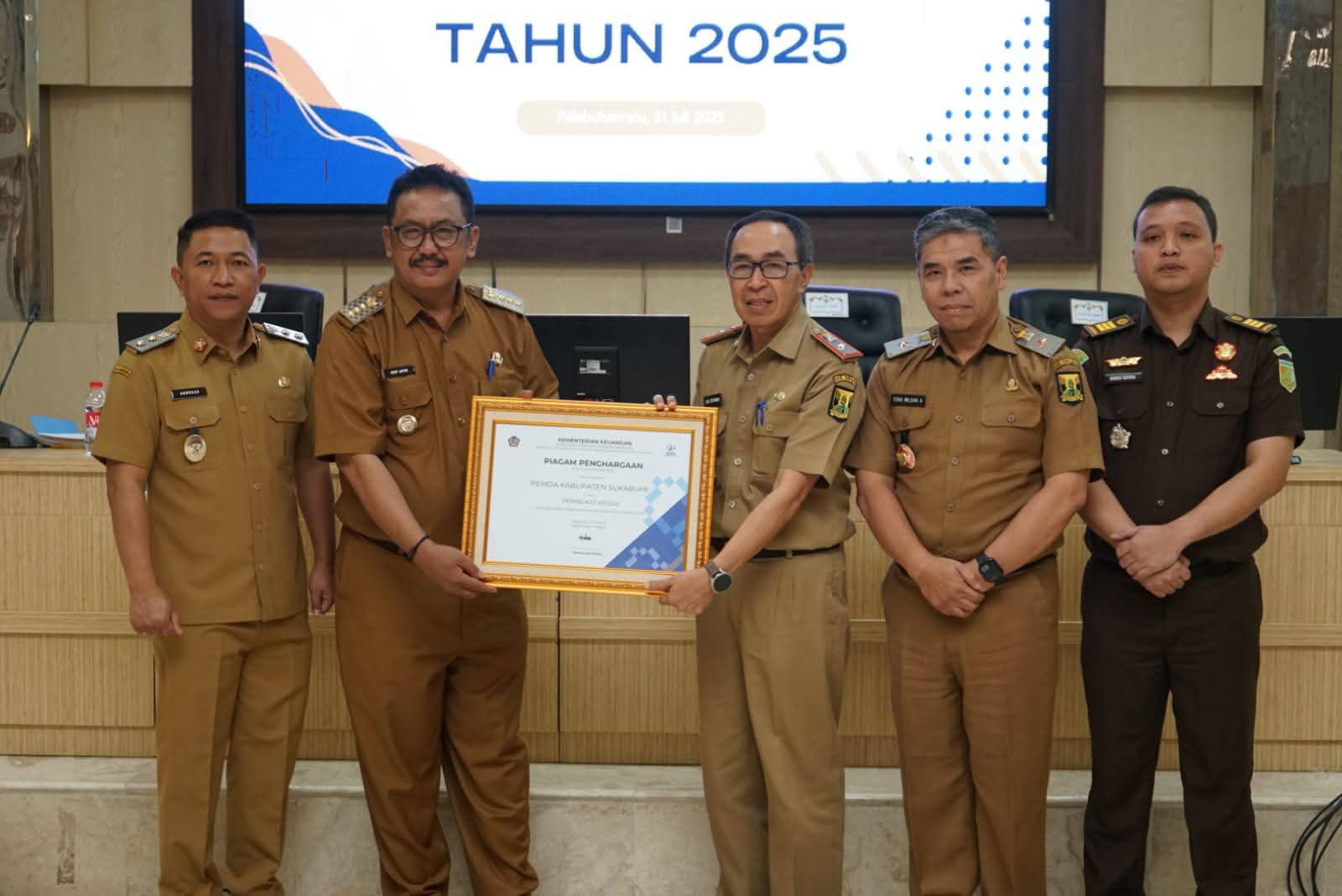 Selain penandatanganan kerja sama, diserahkan pula penghargaan dari Kementerian Keuangan RI Pemerintah Kabupaten Sukabumi menerima piagam penghargaan sebagai peringkat ke-2 kategori Pemerintah Daerah Terbaik.