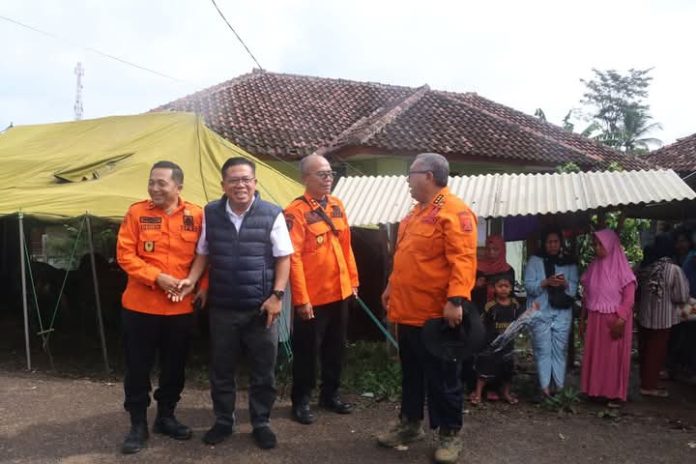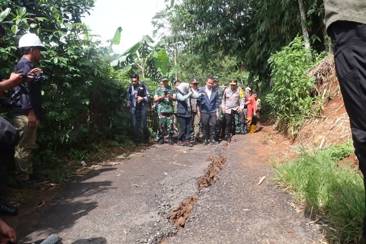 Infokowasi.com – Bupati Sukabumi H. Marwan Hamami mendampingi Pj Gubernur Jawa Barat Bey Machmudin meninjau lokasi bencana pergerakan tanah di Desa Sukamaju, Kecamatan Cikembar, Kabupaten Sukabumi, Kamis, 5 Desember 2024.