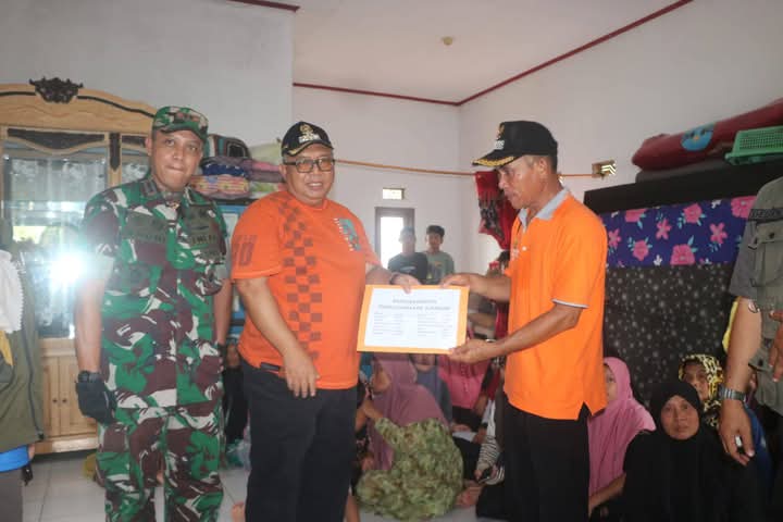 Dalam kesempatan tersebut Bupati Sukabumi beserta jajaran menyerahkan bantuan secara simbolis kepada warga yang terdampak.