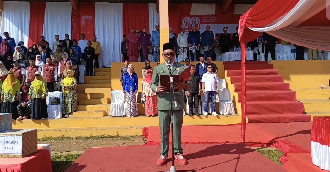 Anggota DPRD Kabupaten Sukabumi dari Fraksi PDIP Perjuangan, Sendi A. Maulana, tampil memukau dalam upacara peringatan HUT Kemerdekaan RI ke-80 di Lapang Mangkalaya, Desa Cibolang, Kecamatan Gunung Guruh, Minggu (17/8/2025).