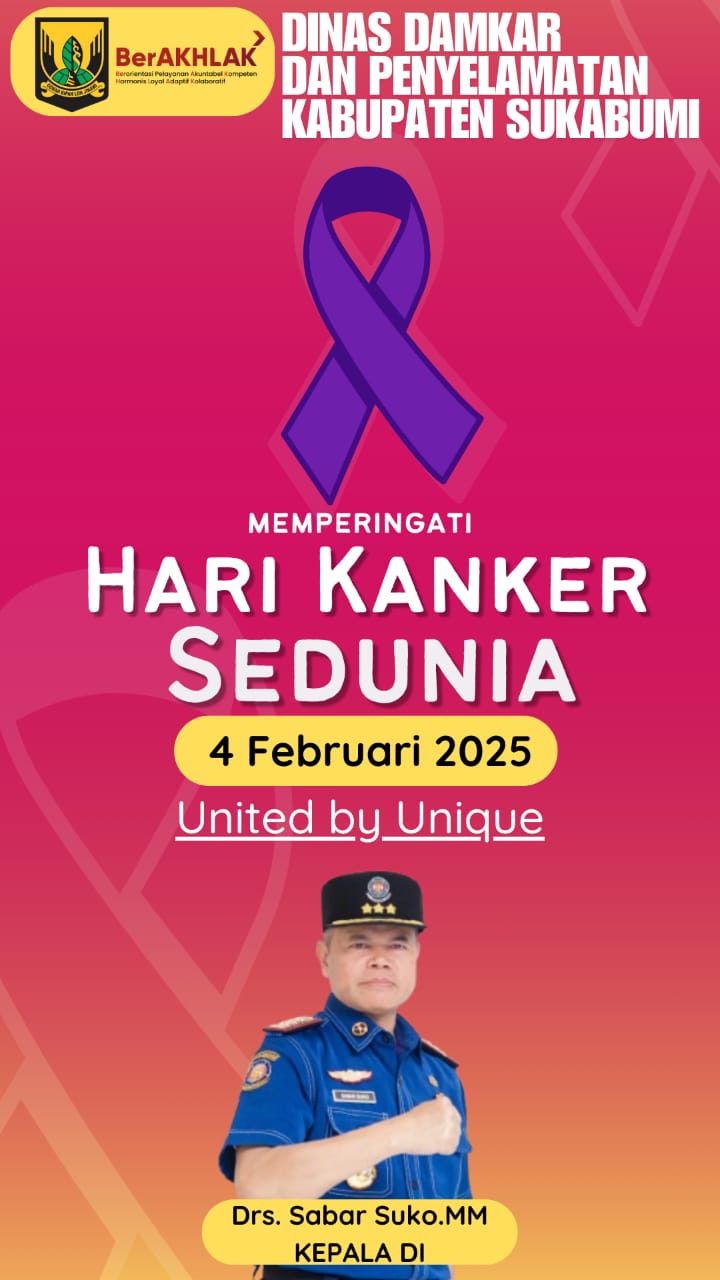 Infokowasi.com – Dinas Damkar Dan Penyelamatan Kabupaten Sukabumi Mengucapkan Selamat Memperingati Hari Kanker Sedunia. (Robi)