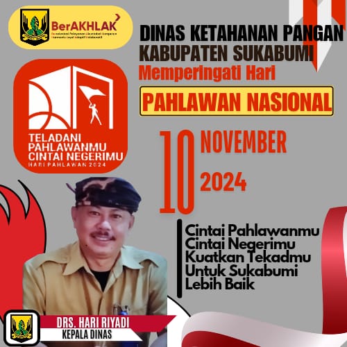 Infokowasi.com – Dinas Ketahanan Pangan Kabupaten Sukabumi Mengucapkan Selamat Hari Pahlawan Nasional 10 November 2024.