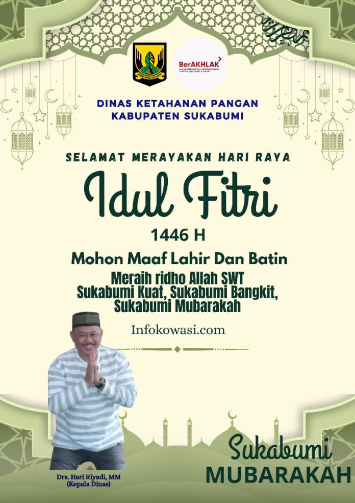 Dinas Ketahanan Pangan Kabupaten Sukabumi Mengucapkan Selamat Hari Raya Idul Fitri 1 Syawal 1446 H/2025 M Minal Aidzin Wal Faidzin Mohon Maaf Lahir Batin. (Robi)