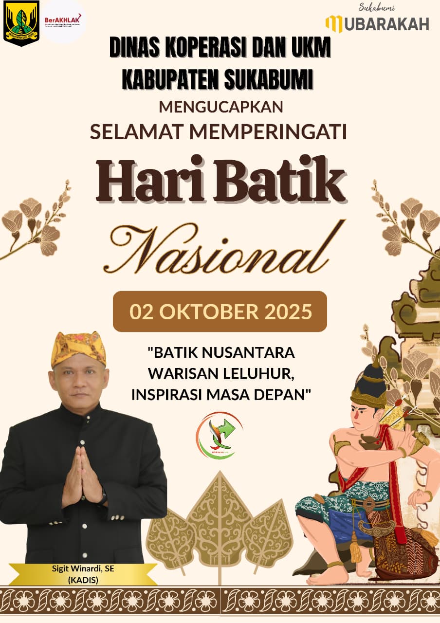 Dinas Koperasi dan UKM Kabupaten Sukabumi Mengucapkan Selamat Hari Batik Nasional 02 Oktober 2025 “Batik Nusantara: Warisan Luhur, Inspirasi Masa Depan”