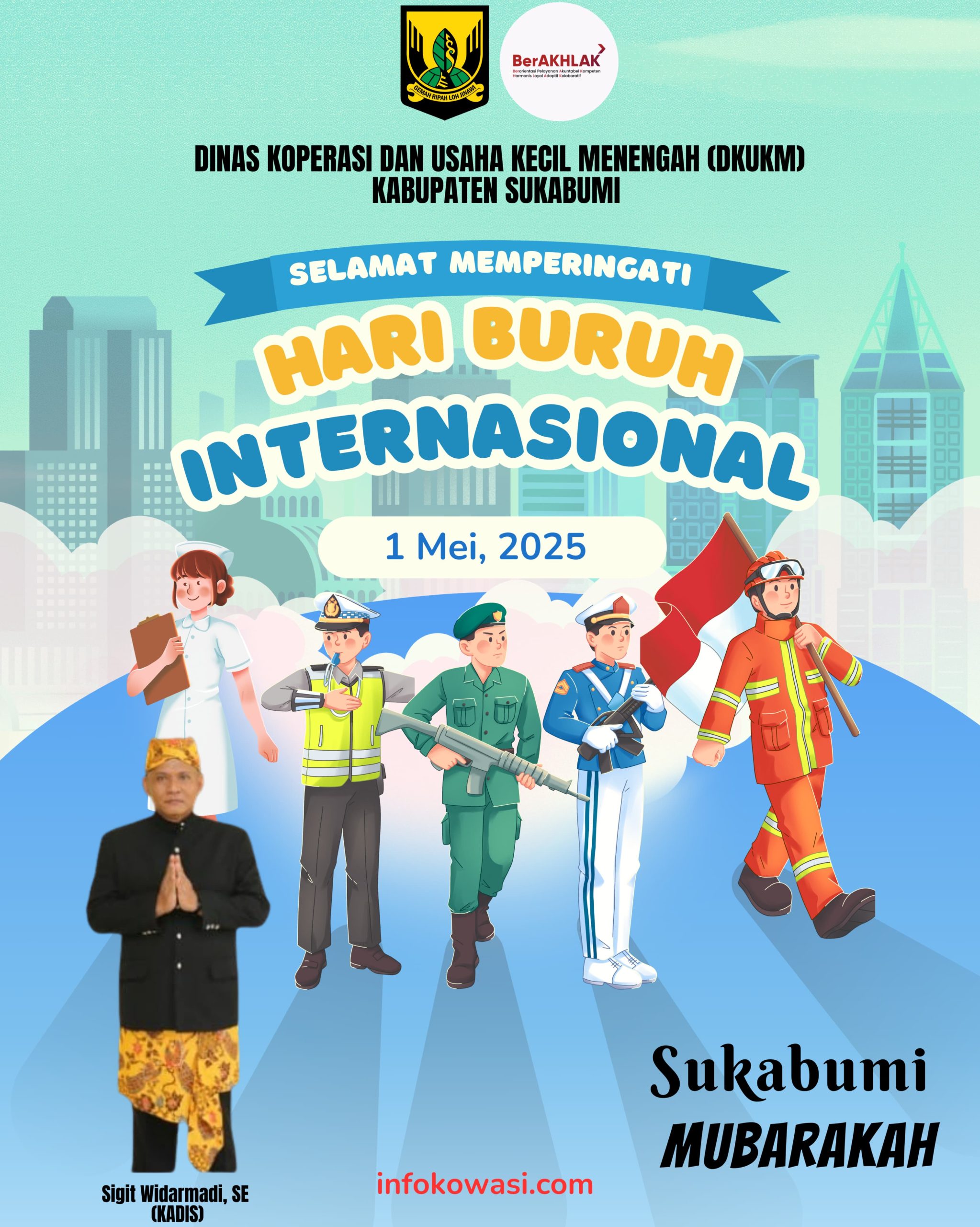 Dinas Koperasi Dan Usaha Kecil Menengah Kabupaten Sukabumi Mengucapkan Selamat Hari Buruh Internasional (My Day) 1 Mei 2025. (Robi)
