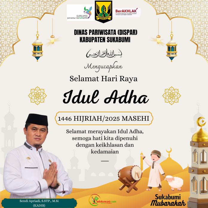 Dinas Pariwisata Kabupaten Sukabumi Mengucapkan Selamat Hari Raya Idul Adha 1446 H/2025 M Semoga Hati Kita dipenuhi Keikhlasan dan kedamaian. (Robi)