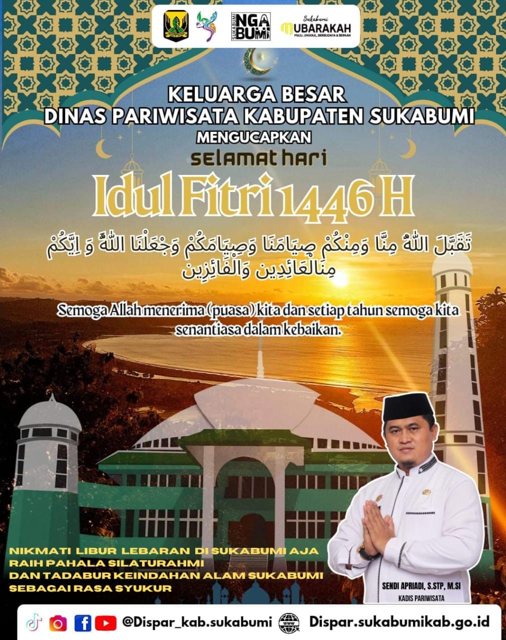 Dinas Pariwisata Kabupaten Sukabumi Mengucapkan Selamat Hari Raya Idul Fitri 1 Syawal 1446 H/2025 M Minal Aidzin Wal Faidzin Mohon Maaf Lahir Batin. (Redaksi)