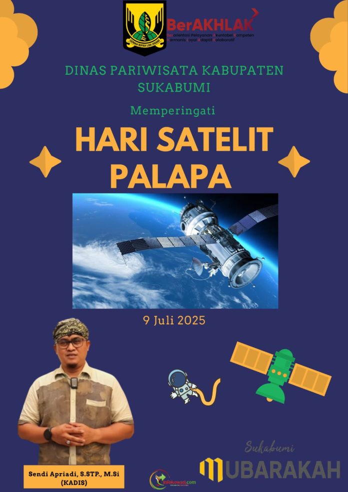Dinas Pariwisata Kabupaten Sukabumi Mengucapkan Selamat Hari Satelit Palapa, 09 Juli 2025, Semoga Generasi Muda Indonesia Bisa Berinovasi Lebih Kreatif Agar Bangsa Ini Bisa Berbangga.