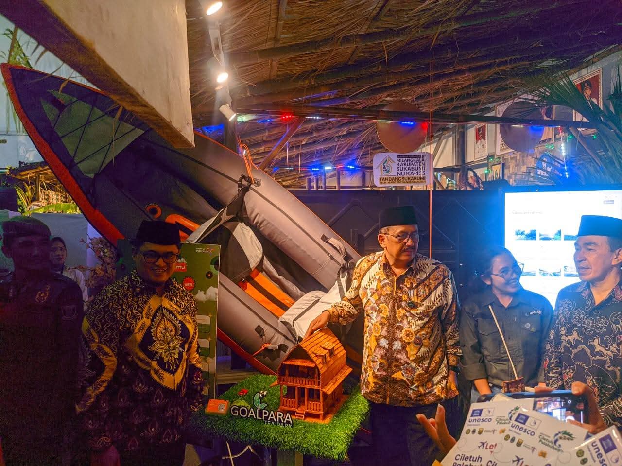 Stand Dinas Pariwisata menawarkan informasi destinasi pariwisata juga turut dikunjungi oleh Bapak Bupati Sukabumi.