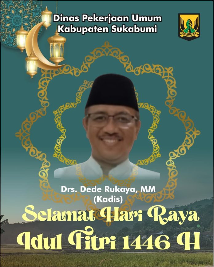 Dinas Pekerjaan Umum Kabupaten Sukabumi Mengucapkan Selamat Hari Raya Idul Fitri 1 Syawal 1446 H/2025 M Minal Aidzin Wal Faidzin Mohon Maaf Lahir Batin. (Robi)