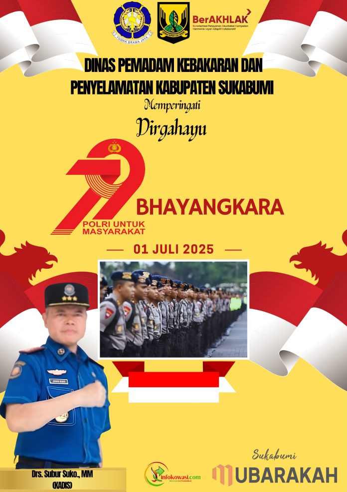 Dinas Pemadam Kebakaran Dan Penyelamatan Kabupaten Sukabumi Mengucapkan Selamat Hari Bhayangkara yang ke 79, 1 Juli 2025 “Polri Untuk Masyarakat”.