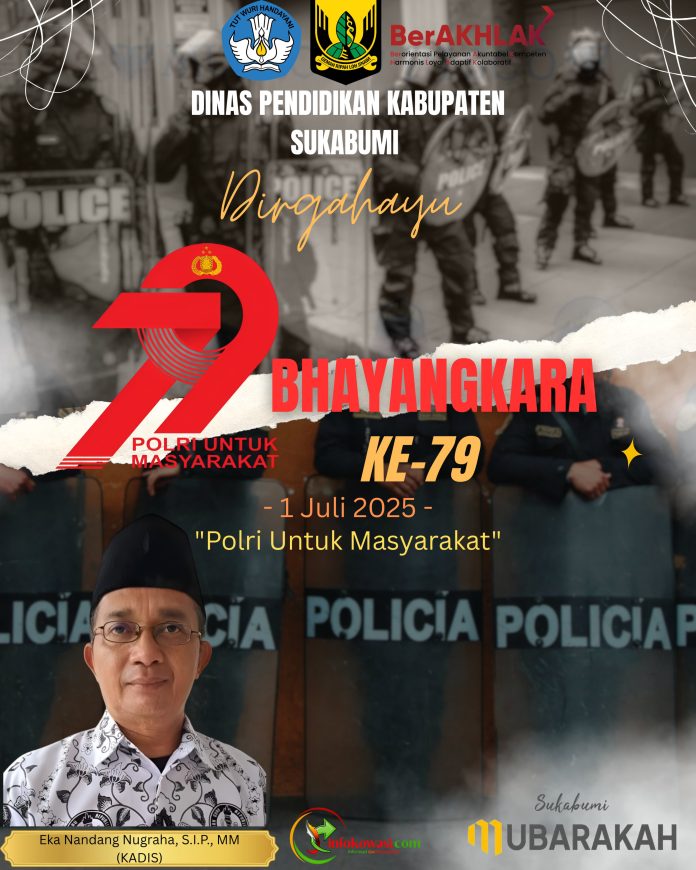 Dinas Pendidikan Kabupaten Sukabumi Mengucapkan Selamat Hari Bhayangkara yang ke 79, 1 Juli 2025 “Polri Untuk Masyarakat”.