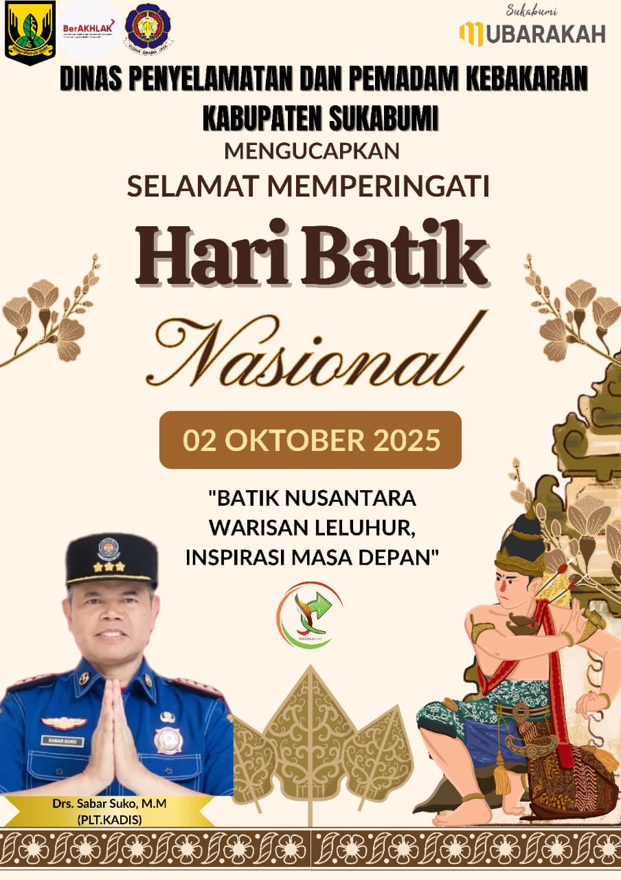 Dinas Penyelamatan dan Pemadam Kebakaran Kabupaten Sukabumi Mengucapkan Selamat Hari Batik Nasional 02 Oktober 2025 “Batik Nusantara: Warisan Luhur, Inspirasi Masa Depan”.