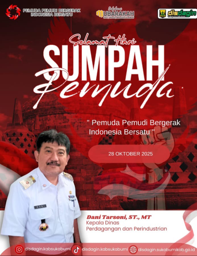 Dinas Perdagangan Dan Perindustrian (Disdagin) Kabupaten Sukabumi Mengucapkan Selamat Hari Sumpah Pemuda 28 Oktober 2025, “Pemuda Bergerak, Indonesia Bersatu”