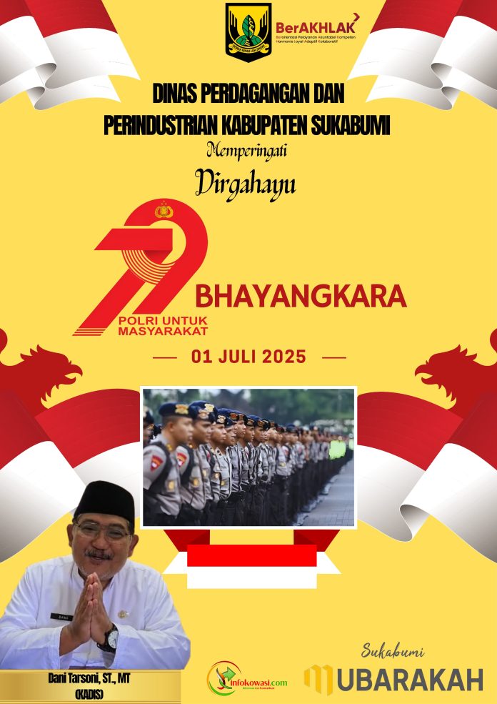 Dinas Perdagangan Dan Perindustrian Kabupaten Sukabumi Mengucapkan Selamat Hari Bhayangkara yang ke 79, 1 Juli 2025 “Polri Untuk Masyarakat”.