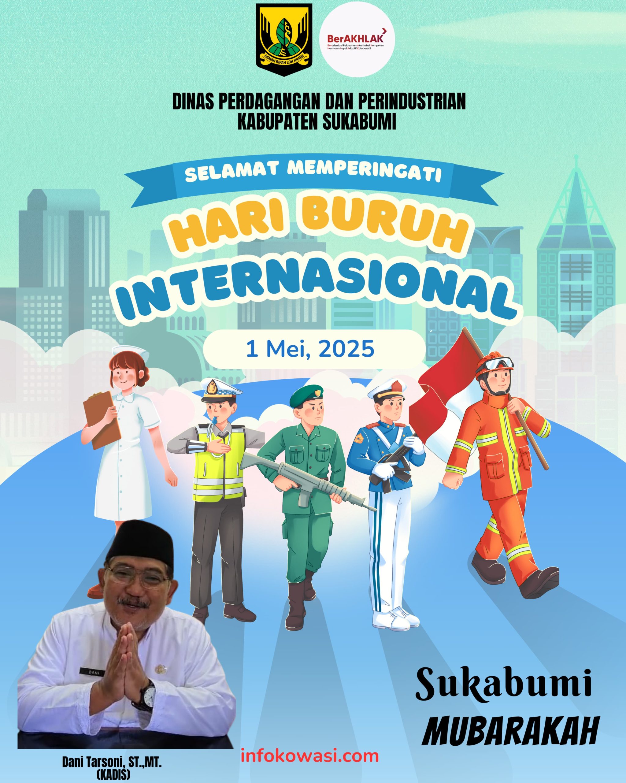 Dinas Perdagangan Dan Perindustrian Kabupaten Sukabumi Mengucapkan Selamat Hari Buruh Internasional (My Day) 1 Mei 2025. (Robi)