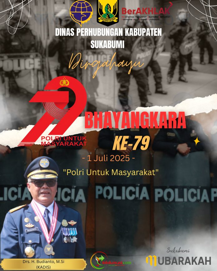 Dinas Perhubungan Kabupaten Sukabumi Mengucapkan Selamat Hari Bhayangkara yang ke 79, 1 Juli 2025 “Polri Untuk Masyarakat”.