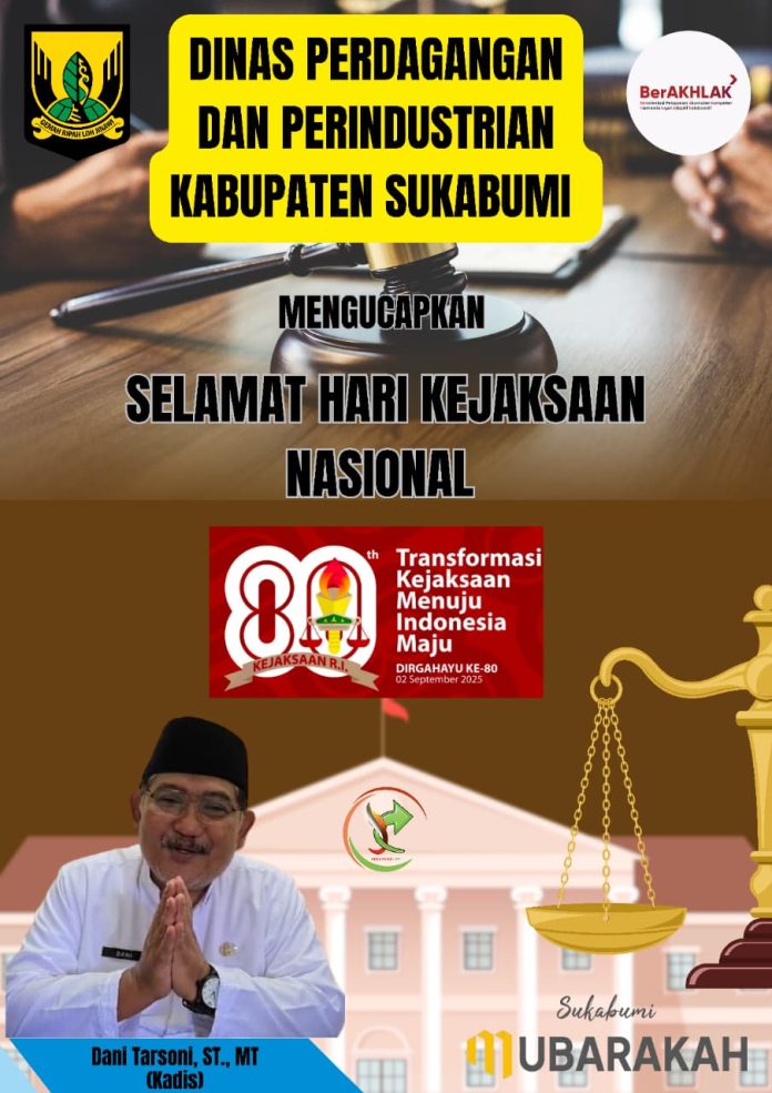 Dinas Perindustrian Dan Perdagangan (Disdagin) Kabupaten Sukabumi Mengucapkan “Selamat Hari lahir Kejaksaan RI Ke 80”