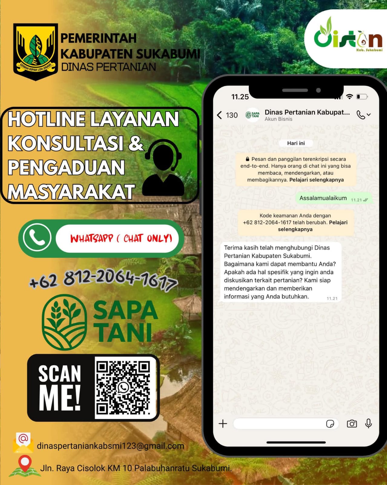 Kepala Dinas Pertanian Kabupaten Sukabumi Aep Majumudin menyampaikan bahwa, Melalui SAPA TANI, petani bisa mendapatkan edukasi, informasi pertanian terkait teknologi dan kebijakan.Tujuan utamanya adalah meningkatkan kesejahteraan dan memperkuat peran petani dalam mewujudkan Swasembada pangan, pungkas Aep Majumudin.(AP)