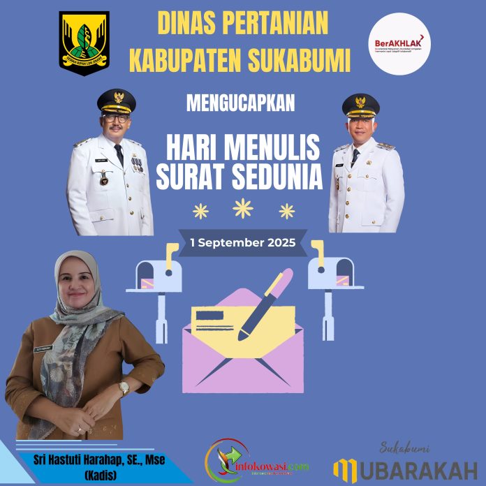 Dinas Pertanian Kabupaten Sukabumi Mengucapkan Selamat Hari Menulis Surat Sedunia 01 September 2025.