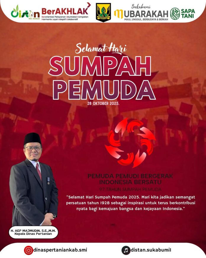 Peristiwa Dinas Pertanian Kabupaten Sukabumi Mengucapkan Selamat Hari Sumpah Pemuda 28 Oktober 2025 Penulis infokowasi - 28 Oktober 2025 Dinas Pertanian Kabupaten Sukabumi Mengucapkan Selamat Hari Sumpah Pemuda 28 Oktober 2025 Redaksi : redaksi@infokowasi.comMarketing : marketing@infokowasi.com