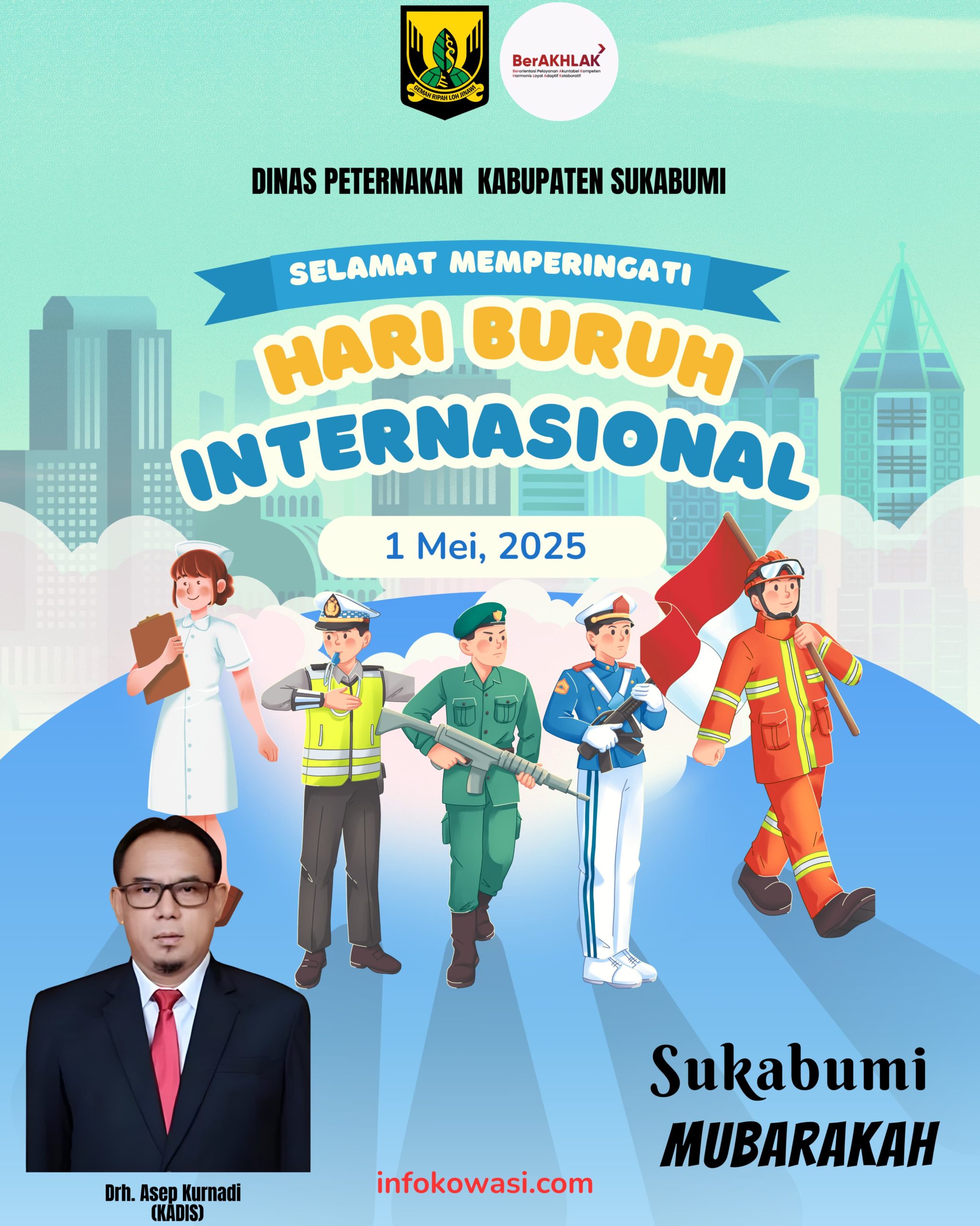 Dinas Peternakan Kabupaten Sukabumi Mengucapkan Selamat Hari Buruh Internasional (My Day) 1 Mei 2025. (Robi)
