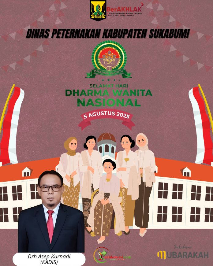 Dinas Peternakan Kabupaten Sukabumi mengucapkan Selamat Hari Darma Wanita 05 Agustus 2025, “Penguatan Fondasi Transformasi Organisasi DWP Menuju Indonesia Emas 2045”.(RS)