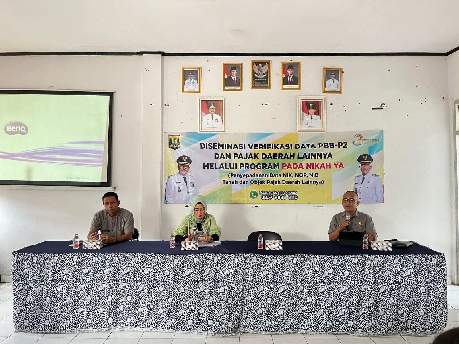 Badan Pendapatan Daerah (Bapenda) Kabupaten Sukabumi melalui Bidang Pendataan dan Penetapan selenggarakan Diseminasi pendataan dan Verifikasi Data PBB-P2 dan Pajak Daerah Lainnya Melalui Program Pada Nikah Ya ( Penyepadanan Data NIK, NOP, NIB Tanah dan Objek Pajak Daerah Lainnya).