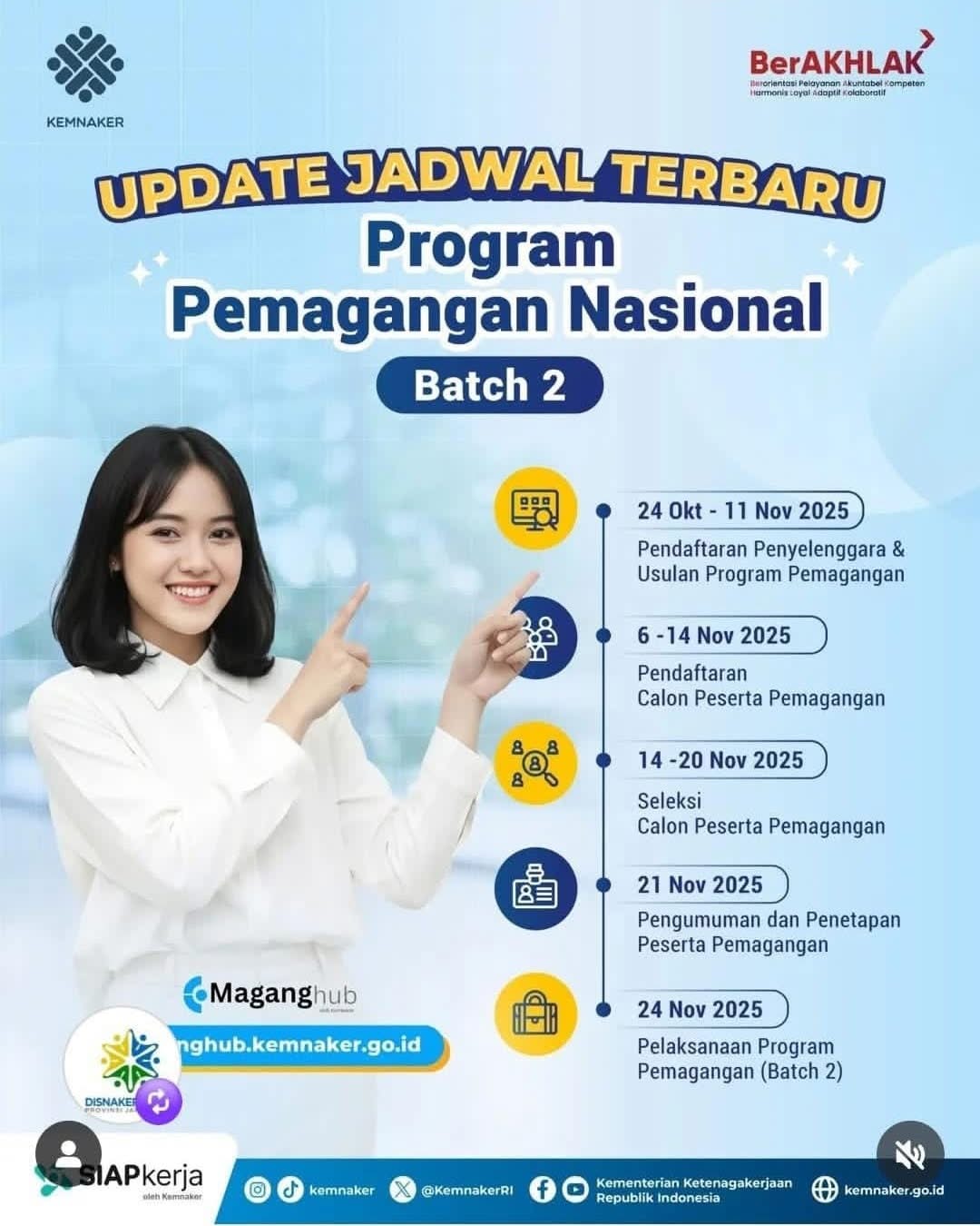 Berikut jadwal lengkap Program Pemagangan Nasional Batch 2 berdasarkan informasi resmi dari Kemnaker: