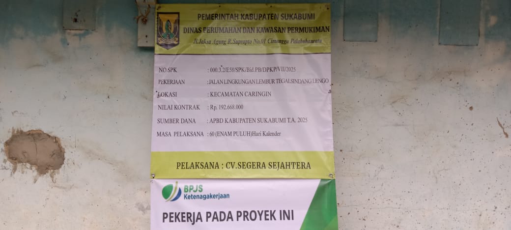 Proyek yang dikerjakan oleh CV SEGERA SEJAHTERA ini menggunakan anggaran dari APBD Kabupaten Sukabumi Tahun 2025. Dengan nilai kontrak Rp.192.668.000 Panjang 470 meter lebar 2,5 meter. Pekerjaan telah dimulai dan diharapkan dapat meningkatkan kelancaran akses transportasi warga sekaligus menunjang aktivitas perekonomian desa.