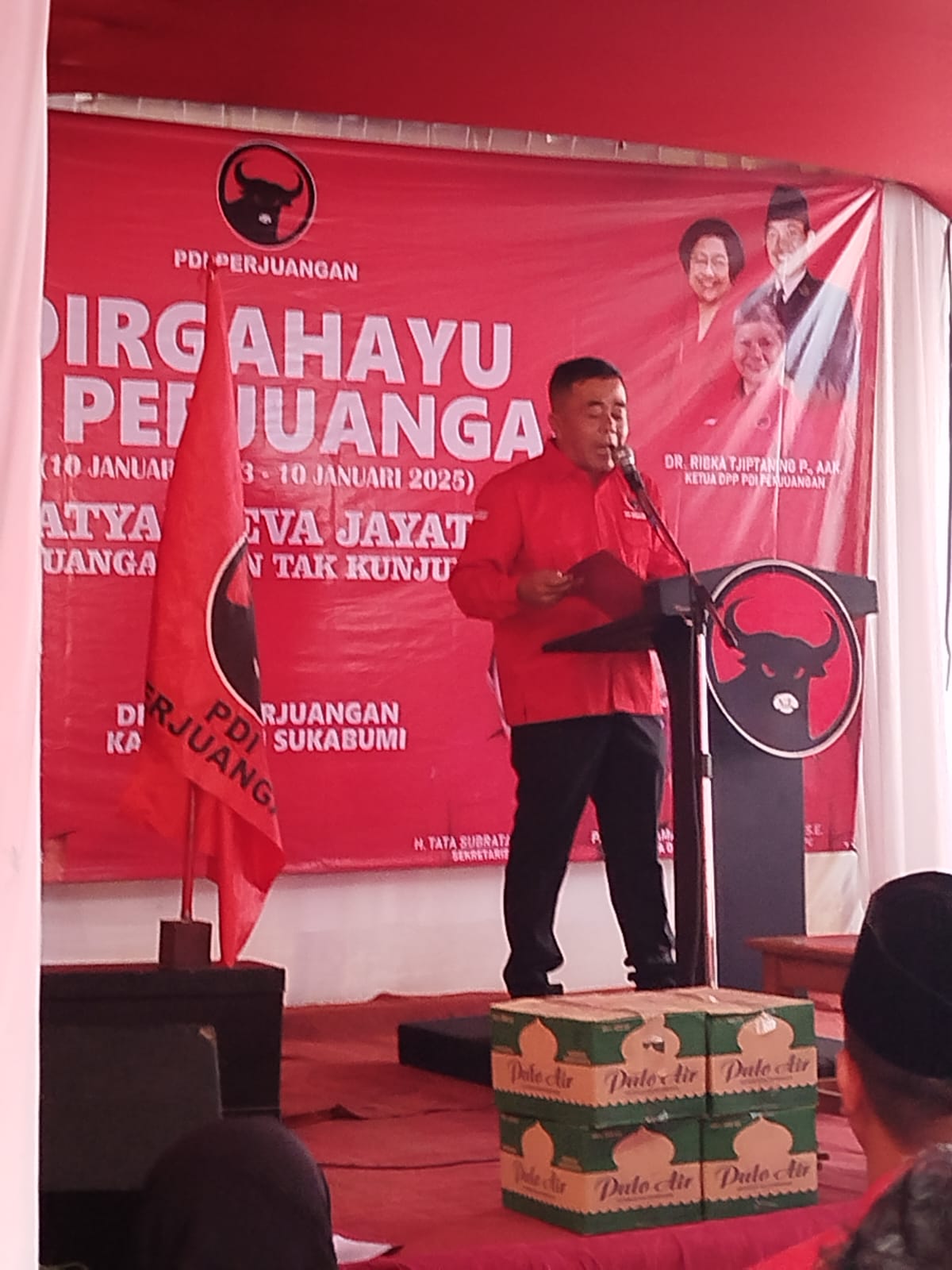 “Di usia ke-52 ini PDI Perjuangan bisa dikatakan tidak muda lagi. Artinya sudah cukup mampu mengisi pembangunan di Indonesia. Dengan demikian, kita berkomitmen untuk melawan siapapun yang berusaha merobek atau mengoyak.ngoyak partai,” kata Paoji Nurjaman, SE.selaku Plt. Ketua DPC PDIP Kabupaten Sukabumi yang sudah tiga kali mengantongi SK untuk Plt.