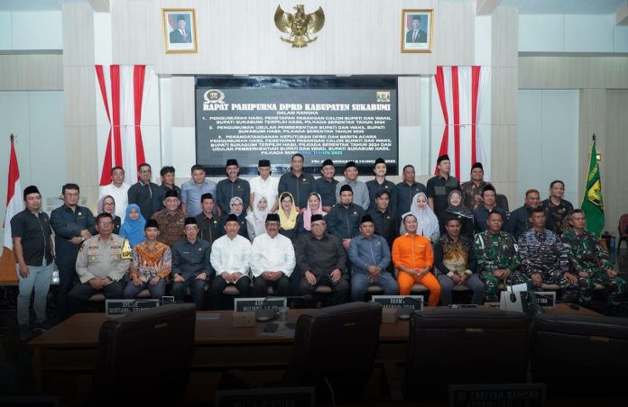 Acara pertama dalam rapat ini adalah pengumuman hasil penetapan pasangan calon terpilih, yang disampaikan oleh Ketua KPU Kabupaten Sukabumi, Kasmin Belle. Beliau mengumumkan bahwa pasangan calon yang telah ditetapkan sebagai Bupati dan Wakil Bupati terpilih untuk periode 2025-2030 adalah Drs. H. Asep Japar, MM dan H. Andreas, SE. Penetapan ini merupakan hasil dari proses pemilihan yang berlangsung secara transparan dan sesuai dengan ketentuan perundang-undangan yang berlaku.