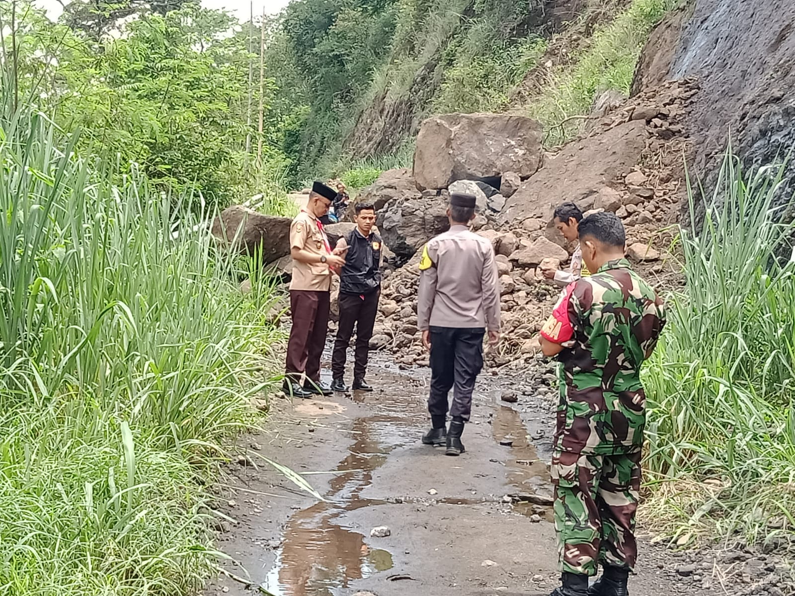 Infokowasi.com – Hujan deras yang di sertai petir pada hari Rabu dan Kamis sore pada 21/11/2024 di wilayah Kecamatan Simpenan mengakibatkan terjadinya longsor pada tebing ruas Jalan Mekar Asih setinggi 25 meter yang mengganggu akses jalan Bagbagan-Mekar Asih. Akses jalan tersebut merupakan satu-satunya jalur yang dapat di lewati kendaraan roda empat maupun roda dua dan pejalan kaki, saat ini warga secara gotong royong membersihkan material batu dan lumpur dengan alat seadanya agar bisa berfungsi kembali.