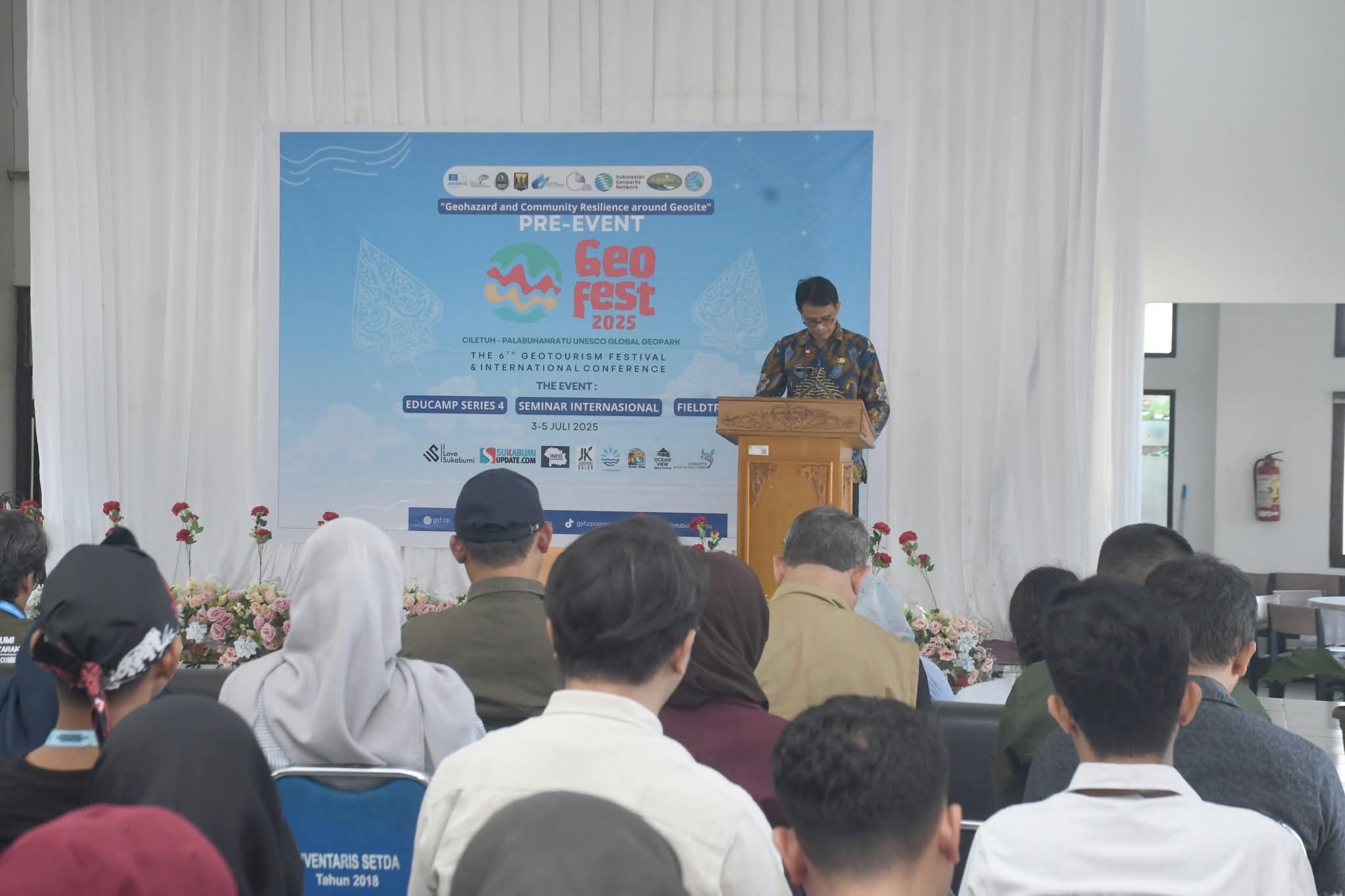 Infokowasi.com – Asisten Daerah (ASDA) Bidang Administrasi Umum Sekretariat Daerah Kabupaten Sukabumi Yulipri membuka kegiatan The 6th Geotourism Festival and International Conference di Aula PPSDM Aparatur di Jalan Cigenteng, Desa/Kecamatan Cisolok, Kabupaten Sukabumi, Kamis (3/7/2025).