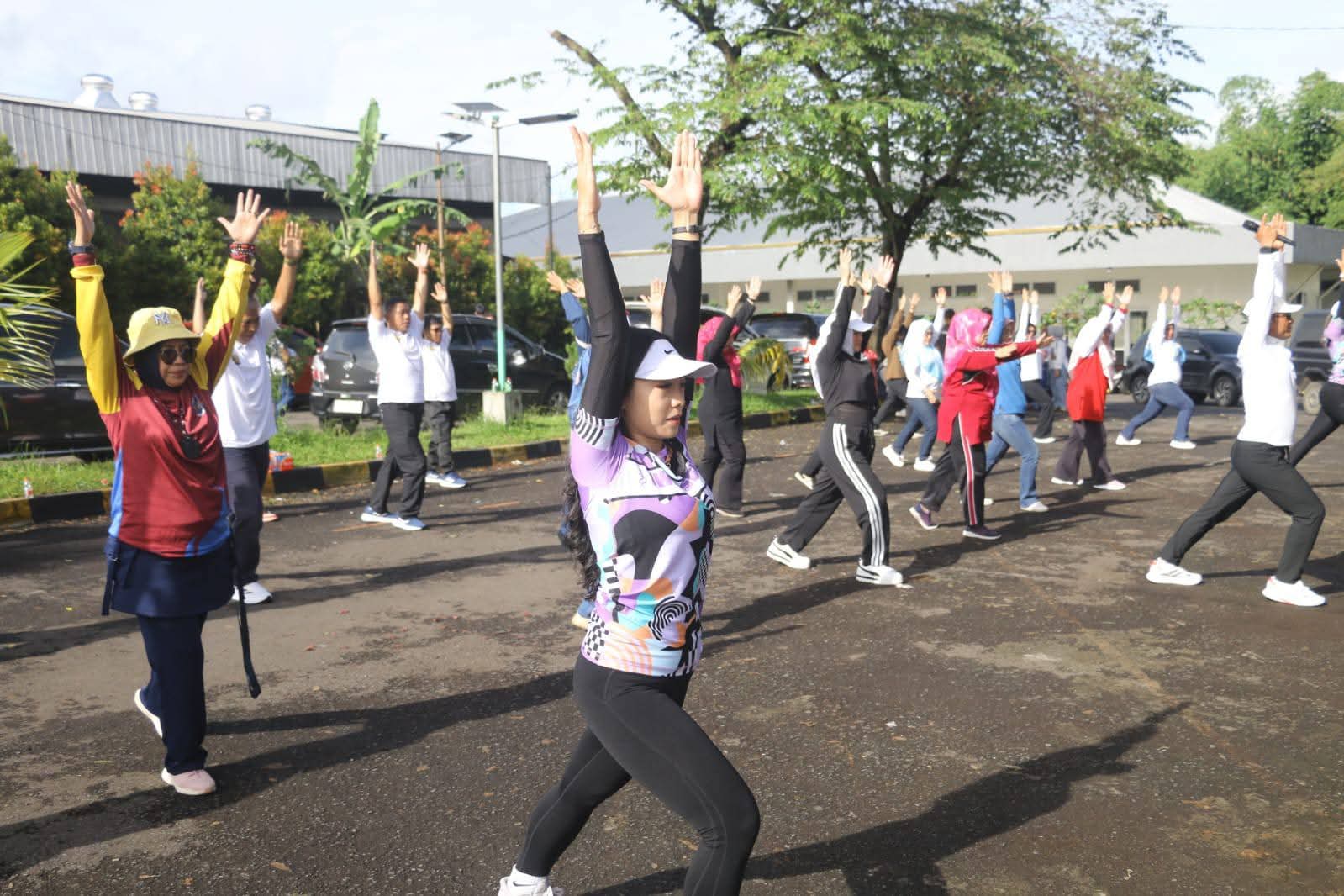 ” Karena itu pelaksanaan senam KORPRI dan pertandingan Olahraga hari ini menjadi sarana penting untuk meningkatkan kebugaran, mempererat kekeluargaan serta menumbuhkan kedisplinan dan semangat kerja yang lebih baik” ungkapnya.