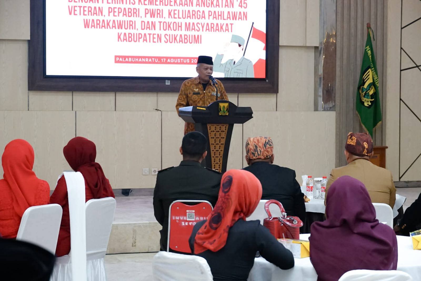 Dalam rangka peringatan HUT ke-80 Kemerdekaan Republik Indonesia, Pemerintah Kabupaten Sukabumi menggelar ramah tamah bersama Perintis Kemerdekaan Angkatan 45, Veteran, Pepabri, PWRI, keluarga pahlawan, warakawuri, serta tokoh masyarakat di Aula Sekretariat Daerah, Minggu (17/8/2025).