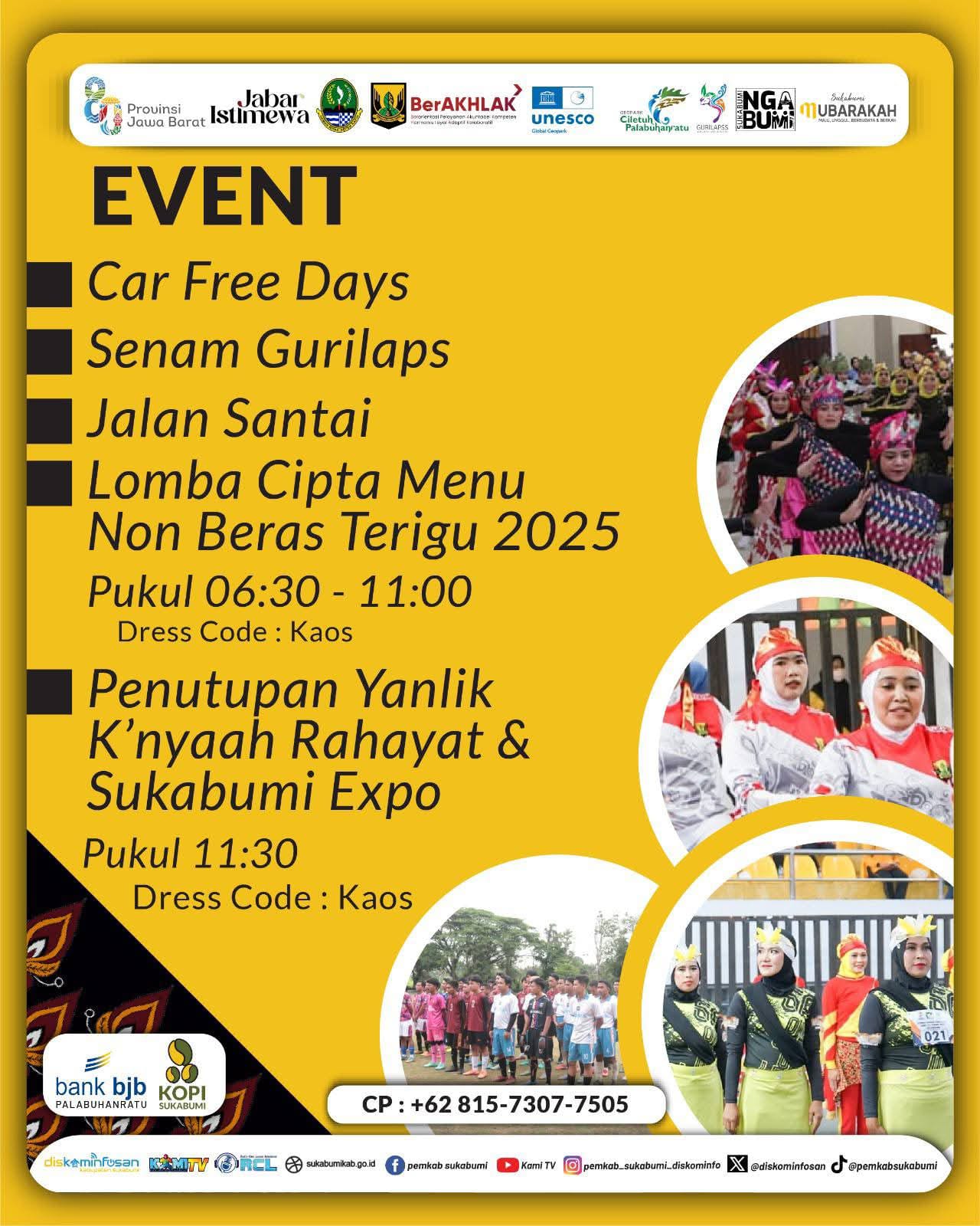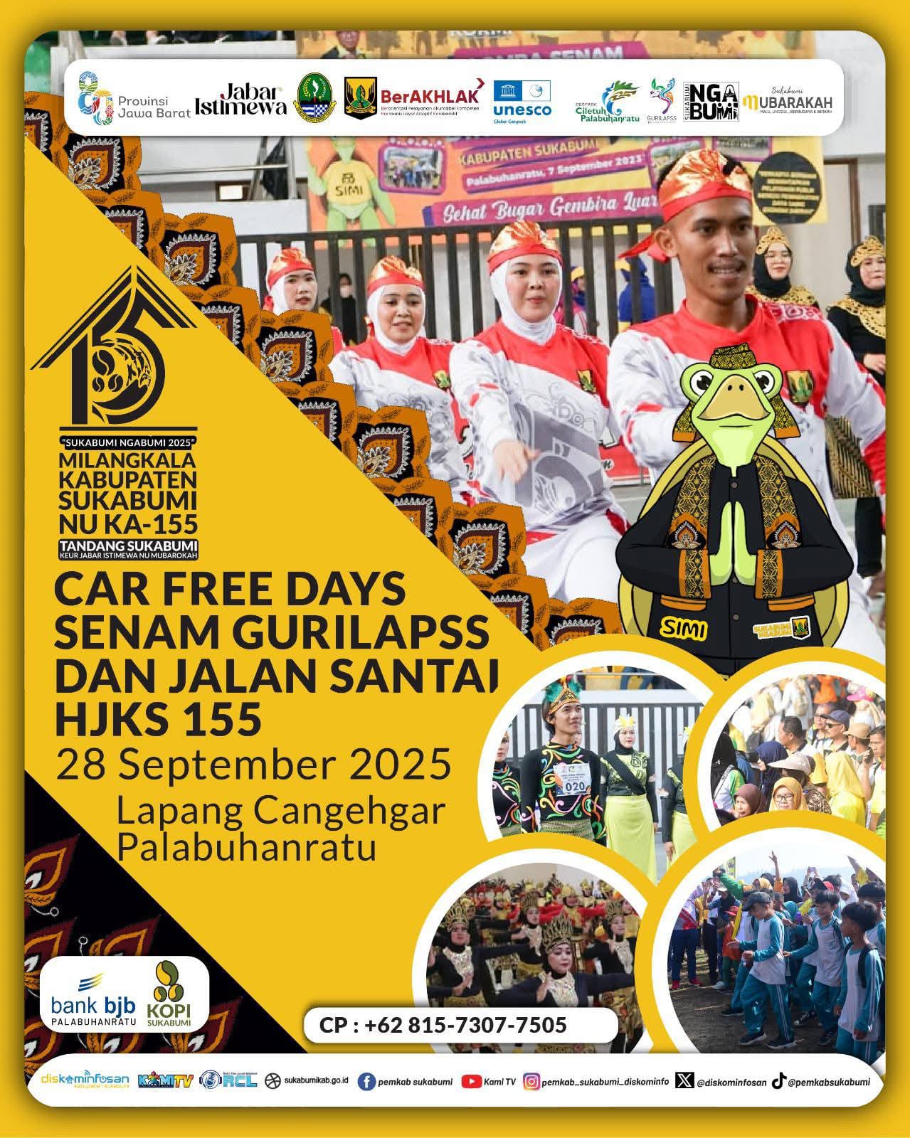 Peristiwa HUT KE 155 Kabupaten Sukabumi, Event Car Free Days, Senam Gurilpss dan Jalan Santai Penulis infokowasi - 28 September 2025 HUT KE 155 Kabupaten Sukabumi, Event Car Free Days, Senam Gurilpss dan Jalan Santai Redaksi : redaksi@infokowasi.comMarketing : marketing@infokowasi.com